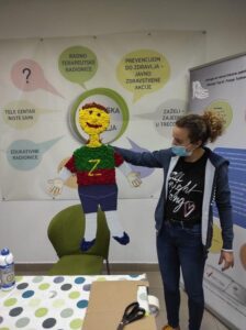 „Petrinjska kuća zdravlja dobila je svog čuvara koji sad pozdravlja svakog posjetitelja i provjerava ima li masku te podsjeća na dezinfekciju ruku i mjerenje temperature. Zdravko se odmah uključio i u Nutri klub motivirajući korisnike da prepoznaju zdrave namirnice koje bi trebali uvrstiti u svoje svakodnevne obroke. Kako bi se osvježili vitaminima i nagradili za uspješnu radionicu, naši Emanuel i Mateo zajedno sa Zdravkom za sve su priredili ljubičasti smoothie od jabuka, banana, naranče, limuna i aronije. Tako će Zdravko svaki ponedjeljak čekati svoje prijatelje u Petrinjskoj kući zdravlja i zajedno s njima sudjelovati u novim radionicama. Ako mu prijatelji ne budu uspjeli doći, on će im zajedno sa Ivom, Sandrom i Marinom slagati telefonske priče, vesela pisma, maštovite poklončiće i druge prilagođene aktivnosti kako bi i u teška vremena svi njegovi stvaratelji imali podršku“, poručuju iz Petrinjske kuće zdravlja.